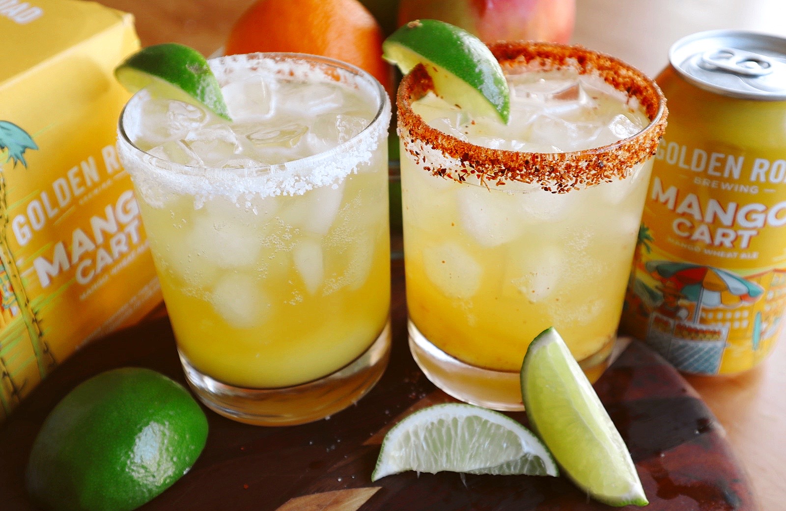 In a blender combine mango habanero lemon juice lime juice tequila and triple sec. Dip rim of glasses with chamoy then dip rim into chile limon powder tajin. Blend together 2 parts mango pulp 1 part water 12 part honey maple syrup to make the mango nectar.